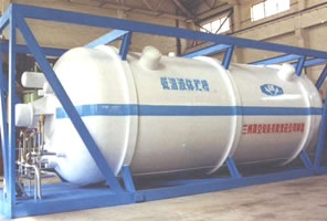 低溫液化氣體儲運容器主要有高真空多層絕熱、真空粉末絕熱以及真空復合絕熱三種不同類型的立式、臥式系列產品。儲運容器最大壓力為3.5MPa,容積為10~150m3,產品具有夾層空間小,支撐結構獨特,抗沖擊及抗傾斜能力強等特點。該類產品發展重點是利用低溫液體無損儲運、低溫制冷及低溫容器檢測等相關技術,攻克低溫液體貯運容器的批量化生產難題,培育大型低溫儲運系統工程承攬能力。