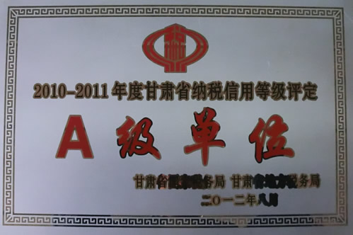 近日,蘭州真空設備有限責任公司獲得由甘肅省國家稅務局、甘肅省地方稅務聯合頒發的“2010-2011年度甘肅省納稅信用等級評定——A級單位”稱號。